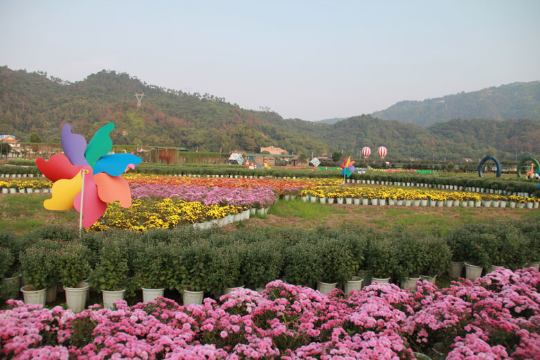 在曲曲折折的盤山公路之后,下山來(lái)到了日月潭農(nóng)莊。雖然不是旺季,沒有盡入眼中的漫天花海,但金秋的菊花依然盛開歡迎著來(lái)訪的客人。遠(yuǎn)離都市的喧囂和工業(yè)區(qū)的塵土,來(lái)到田園里,寧?kù)o而安詳,拋開壓力,將心靜靜地融入莊園之中,盡情享受田野風(fēng)光。果如陶淵明所說(shuō),采菊東籬下,悠然見南山,自有一番閑情逸致。
