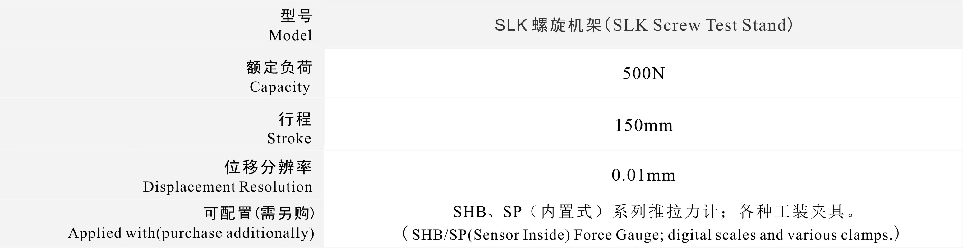 SLK螺旋機架配備推拉力計,適用于各行業和科研機構作拉壓負荷、插拔力、破壞試驗測試。機架采用梯形螺桿傳動,整體式螺母設計;具有手動操作、簡便穩定、立臥兩用等特點。