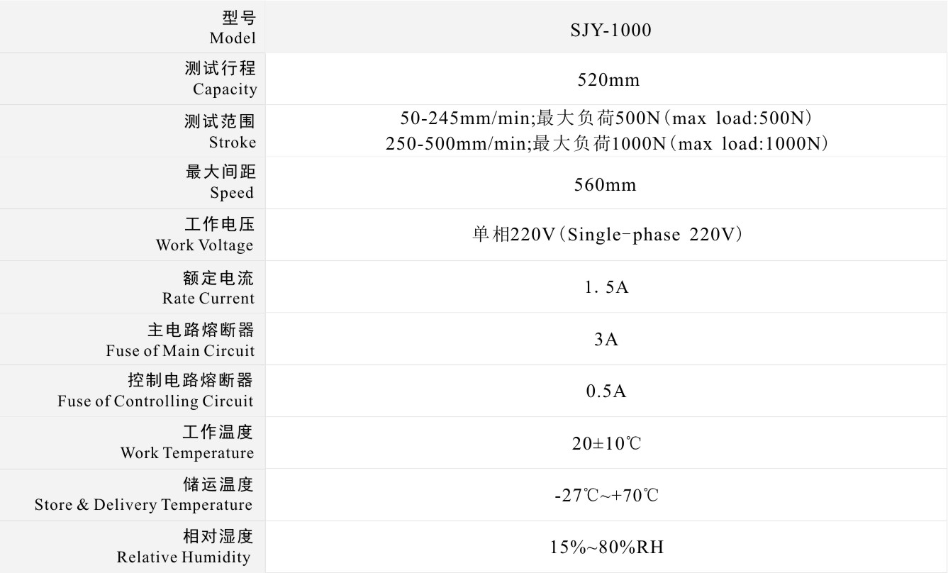 測試速度: 50-245mm/min, 最大負荷500N