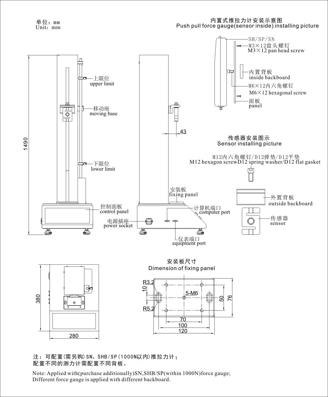 可配置(需另購):SN、SHB/SP(2N-1KN)推拉力計,各種推拉測試工裝夾具。