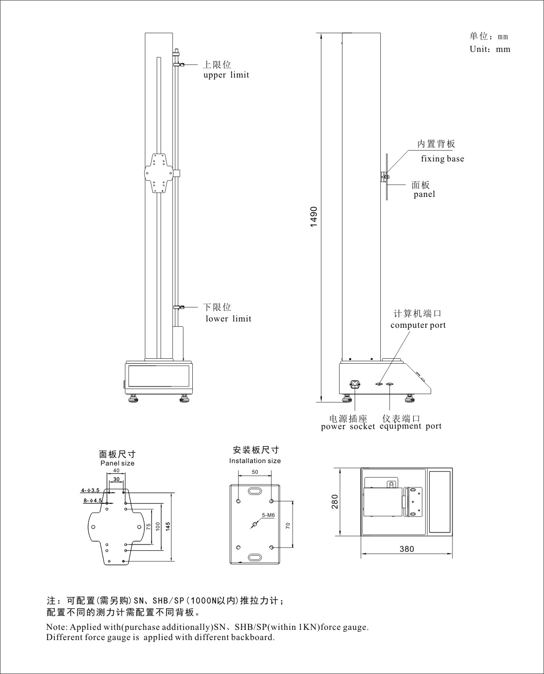 可配置(需另購):SHB/SP(2N-1000N)推拉力計(jì),各種推拉測試工裝、夾具。