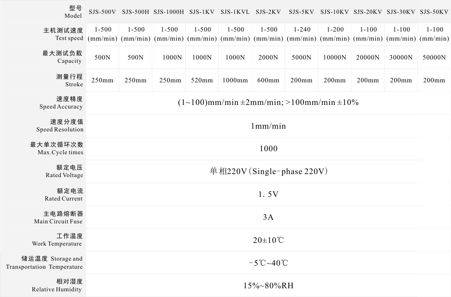 SJS系列配置步進電機,采用雙立柱結構;本機臺具有結構穩定,測試速度精度高,施加負載穩定性好,適用范圍廣等優點。具有無極調速,手動(點動)、自動循環切換功能。配置推拉力計(SHB、SP)及相關軟件可以在計算機上實現數據測試和機臺控制;適用于各行業推拉負荷、插拔力、疲勞試 驗、破壞試驗等測試。