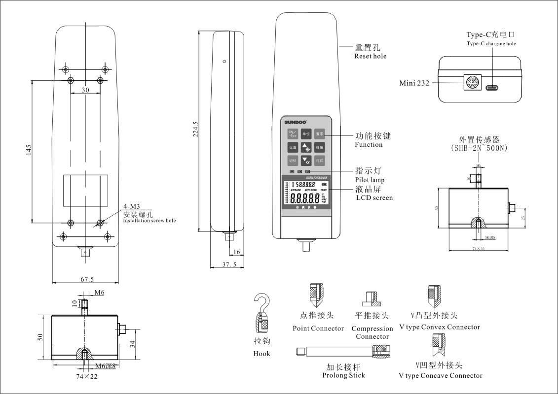 SHB-B系列數顯式推拉力計是多功能高精度推拉負荷測試儀器。分體式設計,可適用特殊產品的推拉負荷測試、插拔力測試,破壞試驗等。數字顯示分辨率高,使用方便,可連接電腦同步顯示試驗力曲線圖及試驗過程記錄追溯為新一代高效高精度負荷推拉測試儀器。